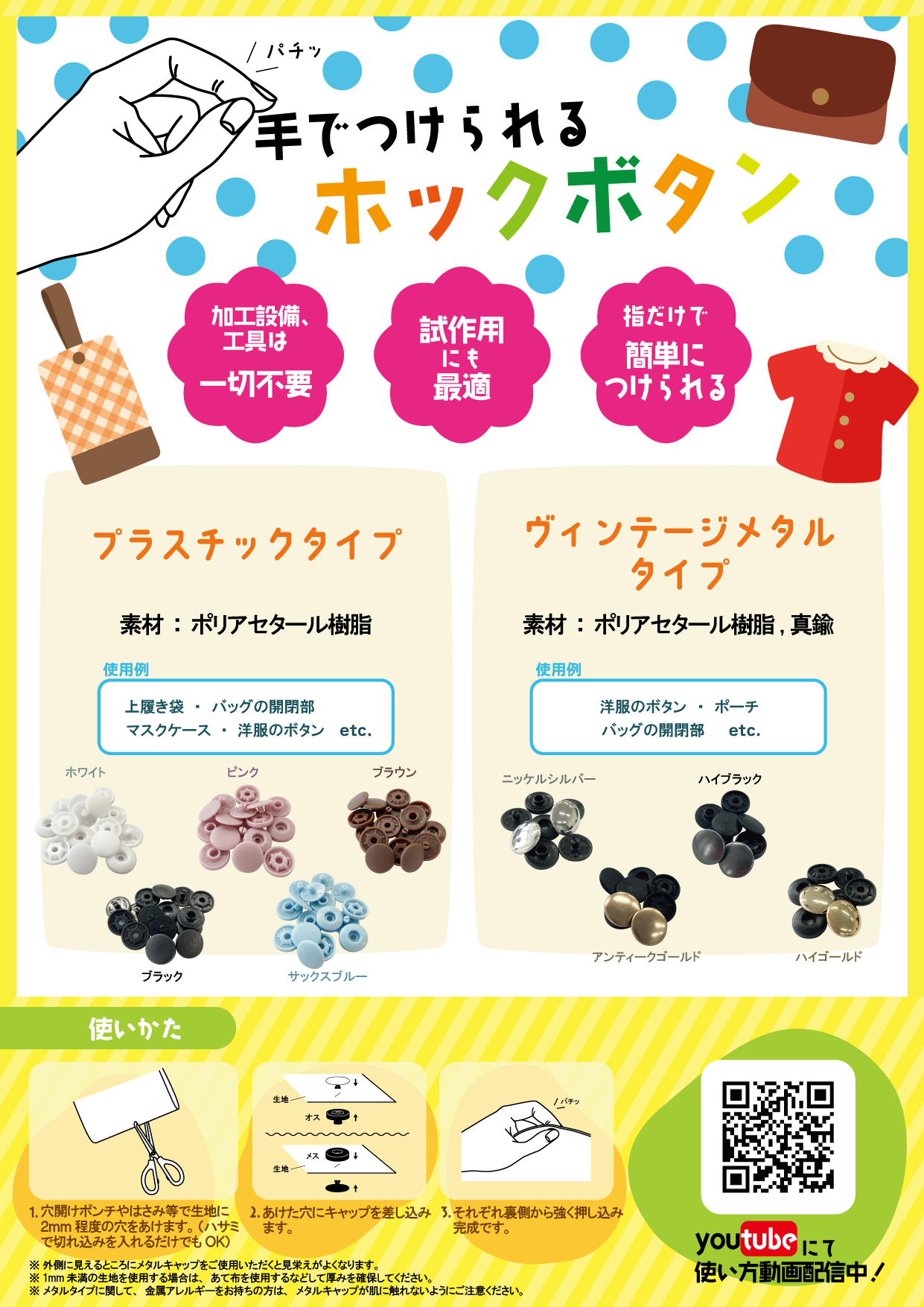 誰でも簡単に使用することができるホックボタンです。